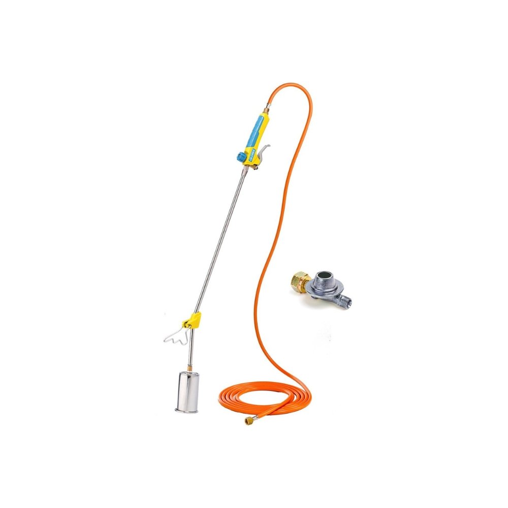 The Gloria Thermoflamm Bio Professional Set is a powerful, chemical-free weed burner with pressure regulator and long gas hose. Suitable for large surfaces and multifunctional.