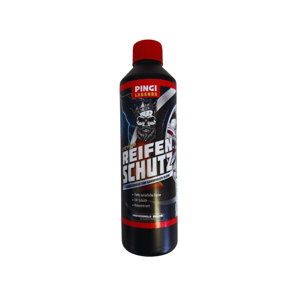 De PINGI Legends Reifen Schutz is een geconcentreerd bandenverzorgingsproduct dat uw autobanden hun oorspronkelijke diepzwarte kleur teruggeeft. Het beschermt het rubber tegen UV-straling en zorgt voor een diepe, natuurlijke glans zonder olieachtig effect. Ideaal voor gebruik na het wassen van het voertuig en naar wens te verdunnen met water.