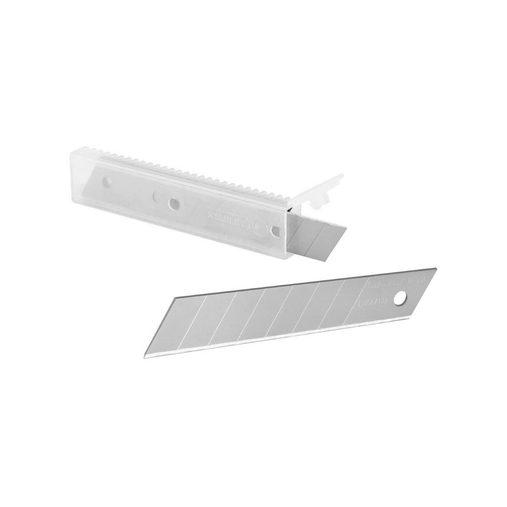 De Stanley Afbreekmesjes 18mm (10 stuks) zijn robuuste reservemesjes met 7 breeksegmenten, passend in alle 18 mm afbreekmessen van Stanley. Geschikt voor diverse materialen.