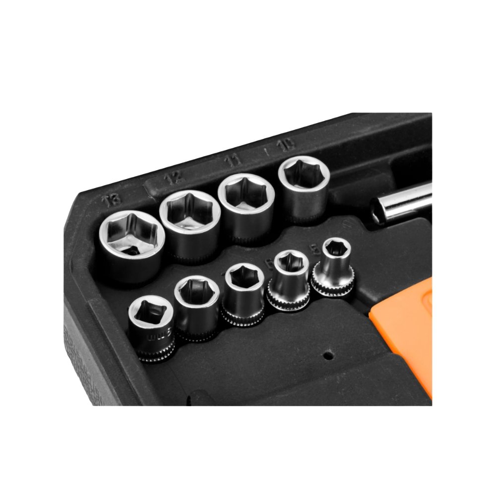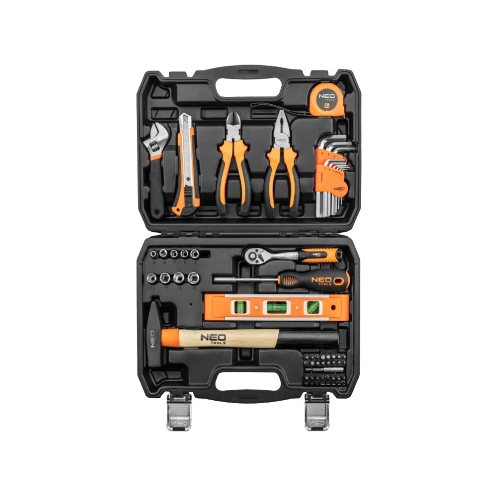 De NEO Tools Gereedschapset 60-delig is een ideale keuze voor zowel professionals als intensieve doe-het-zelvers die op zoek zijn naar betrouwbaar en veelzijdig gereedschap. Alle onderdelen zijn vervaardigd uit hoogwaardig chroom-vanadiumstaal, waardoor ze uitstekend bestand zijn tegen slijtage en dagelijks gebruik. De set wordt geleverd in een stevige en overzichtelijke kunststof koffer, waarin elk onderdeel zijn eigen plek heeft. Zo heb je altijd snel toegang tot het juiste gereedschap.
