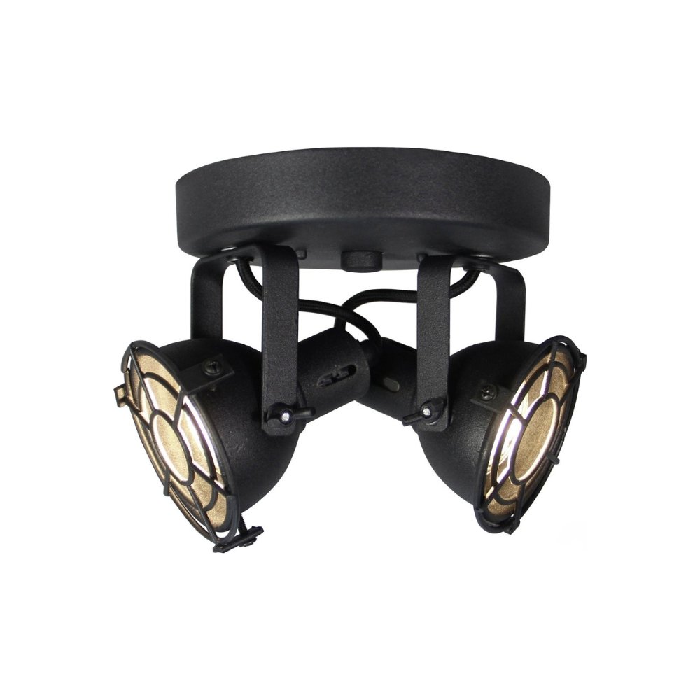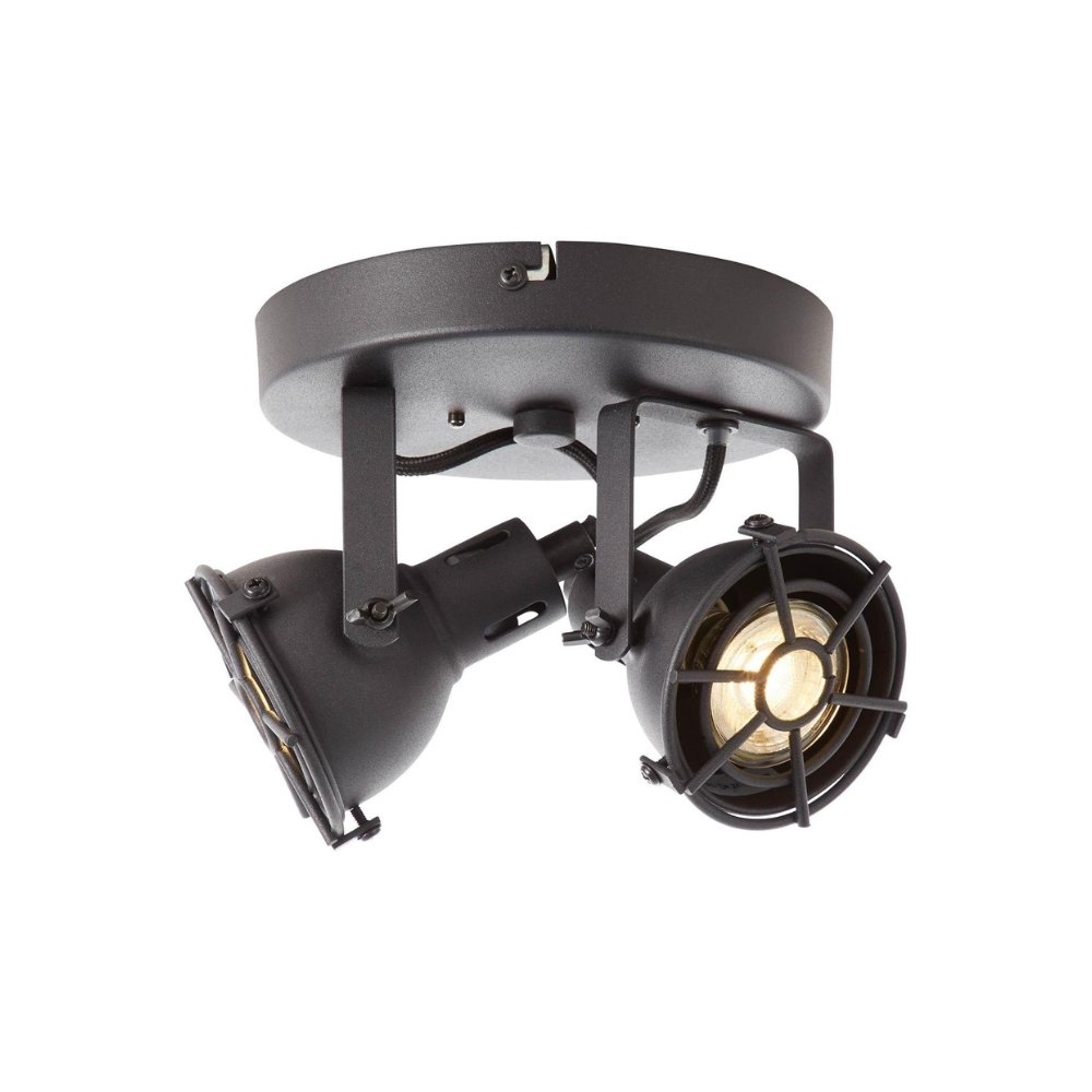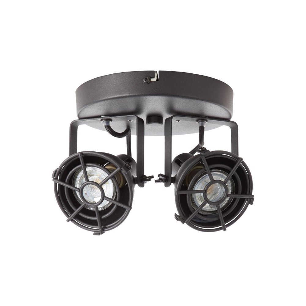 De Brilliant Plafondlamp Jesper is een zwarte metalen plafondlamp met twee GU10 LED-lichtbronnen, geschikt voor droge binnenruimtes. Landelijke uitstraling en direct klaar voor gebruik.