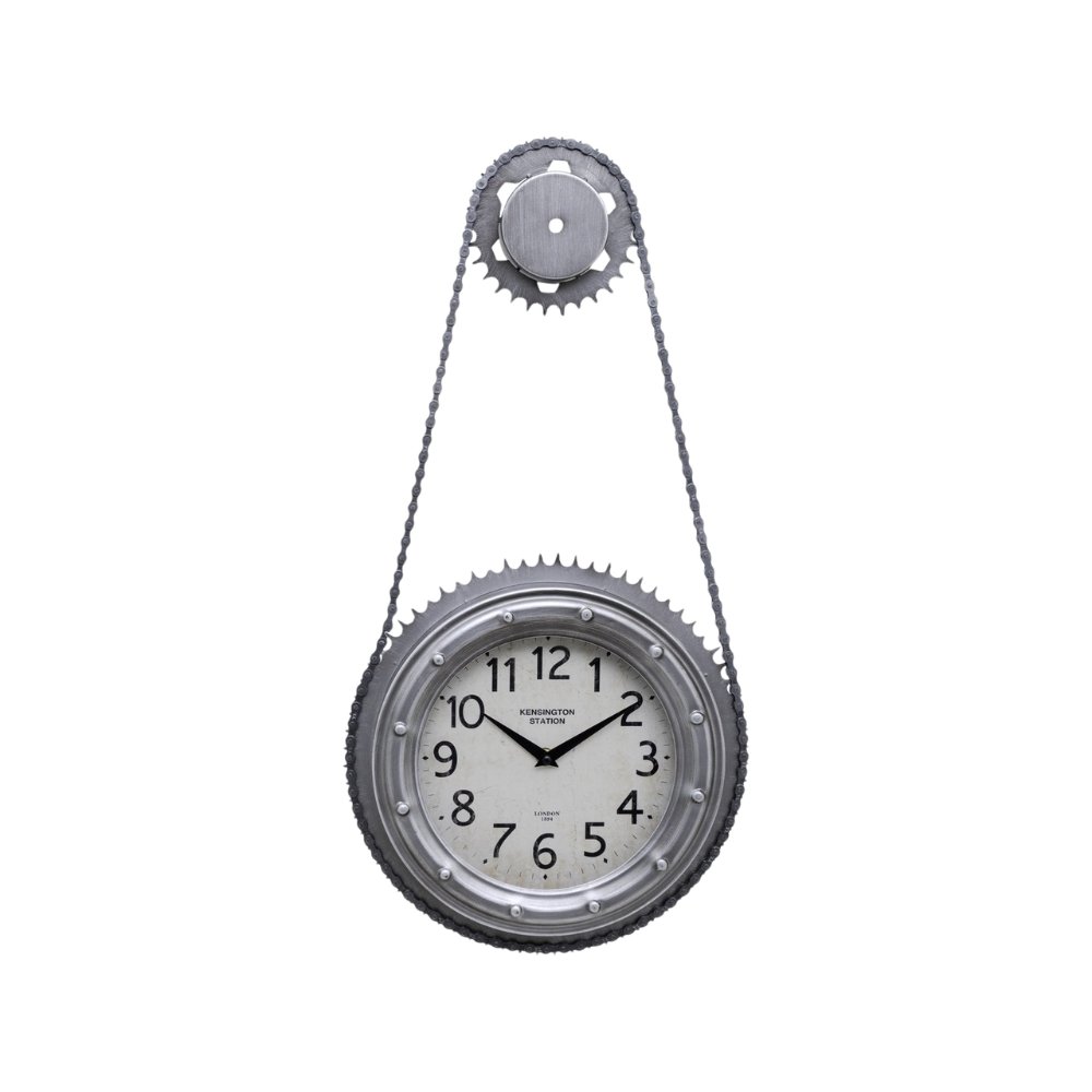 De Volt! Wandklok Tandwiel is een stoere industriƫle wandklok met een robuust tandwielontwerp. Dankzij de ruwe afwerking en opvallende details is deze klok een echte blikvanger in een modern, industrieel of vintage interieur. Inclusief decoratieve ketting voor een authentieke uitstraling.