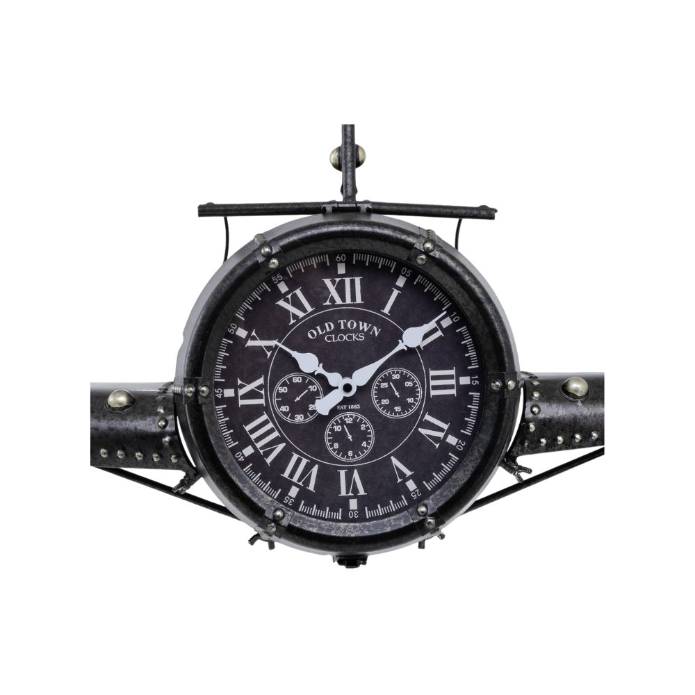 Door de combinatie van design en functionaliteit vormt deze wandklok een uniek decoratief element dat perfect aansluit bij een industrieel, modern of vintage interieur. Een echte eyecatcher voor iedereen met passie voor luchtvaart en opvallende woondecoratie.